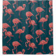 Vector Muster mit handgezeichneten Flamingos in lebendiger Korallenfarbe auf dunkelblauem Hintergrund.