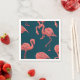Vector Muster mit handgezeichneten Flamingos in lebendiger Korallenfarbe auf dunkelblauem Hintergrund.