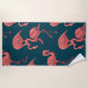 Vector Muster mit handgezeichneten Flamingos in lebendiger Korallenfarbe auf dunkelblauem Hintergrund.