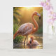 Ein majestätischer Flamingo steht anmutig in flachem Wasser, und ihr Baby-Kick sitzt bequem daneben. Alle Texte können geändert werden.