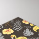Liebe du Flamingo-Vögel? Genießen Sie die Natur in den Regenwäldern? Dieses tropische Flamingo nahtlose Muster wird Ihren Sommerferien etwas Spaß machen. Es passt dir, wenn du am Strand sitzt. Blumenmuster geben immer den Eindruck von Freude und Glück. Sie können es als Geschenk an Ihre Freunde, die Liebe Flamingo-Vögel. Flamingo-Oberflächenmuster mit Blume und Blätter in Gelb und dunklem Hintergrund