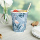 Dieser Papierbecher weist ein prächtiges Muster von Flamingos, umgeben von üppigem tropischem Blattwerk und Orchideen in staubblauer und blütenrosa Farbe. Suchen Sie ID868 um weitere Produkte mit diesem coolen, tropischen Muster zu sehen.