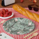 Diese Papiertafel weist ein wunderschönes Muster von Flamingos auf, umgeben von üppigem tropischem Blattwerk und Orchideen in Salbeigrün und Rosa. Es wurde ein Etikett zur Aufbewahrung Ihres Namens und Monogrammes oder eines anderen Textes bereitgestellt. Suchen Sie ID868 um weitere Produkte mit diesem coolen, tropischen Muster zu sehen.