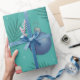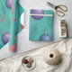Ein verspieltes tropisches Weihnachtsdesign mit eleganten rosa Flamingos in Weihnachtsmannmützen, umgeben von lila und blauen Ornamenten, Palmenfronten und festlichen Sternakzenten. Der aquamarine Hintergrund verleiht der Küstenstadt eine frische Atmosphäre, die sich perfekt für Papierverpackungen, Ferientextilien oder ein fröhliches saisonales Dekor eignet. Es verbindet die Launen der Flamingos mit dem klassischen Weihnachtsfunkel für ein einzigartiges Strandambiente.