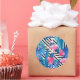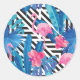 Flamingo & Palms auf geometrischem Muster Runder Aufkleber