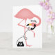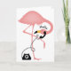 Eine Grußkarte, die eine Illustration eines Flamingos mit Hals kennzeichnet, kurvte unten. Flamingo spricht an einem Dreharttelefon. Personifizieren Sie den Gruß über dem Kopf des Flamingos.