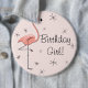Inspiriertes Design Mitte des Jahrhunderts mit einer Retro-Touch mit einem rosa Flamingo und Sternen auf einem hellrosa Hintergrund. Ein individuell anpassbares Design für Sie, um mit Ihrem eigenen Text, Bildern und Ideen zu personalisieren. Ein originelles digitales Kunstbild, das von Jess Perry bei QuirkyChic Retro erstellt wurde.