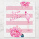 Flamingo Pink Weißer Streifen floraler Chic Silver Weinetikett