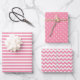Flamingo Pink & White Streifen Polka Dot Zickzack Geschenkpapier Set
