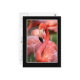 Rosa Flamingo Postkarte in Florida auf einem schwarzen Hintergrund.