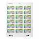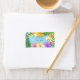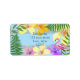 Schönes, rosa Flamingo in Kombination mit farbenfrohen Aquarellen, tropischen Blume und Palmen-Blätter. Luau, bezauberndes, blaues Streifen Muster, Sommer Party Rücksendeadressen-Aufkleber.