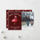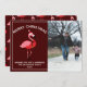 Ein lustiges, Foto, Weihnachtskarte mit einem rosa Flamingo in Santa Outfit auf bordeauxrotem Hintergrund. Diese tropische und skurrile Urlaubskarte ist für Ihr Foto bereit. Flamingo Santa Burgundy Foto Weihnachtskarte Hochzeitsplanung | ©Melissa Patton - Künstler/Illustrator
