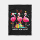 Flamingo Santa Hat Happy New Year Light Long Sleev Fleecedecke