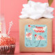 Ein lebendiges, eigenartiges Weihnachtsdesign mit Retro-Touch mit rosa Flamingos mit Weihnachtsmannmützen, cremefarbenen geometrischen Formen und blauen Sternen (Farbwechsel). Ein individuell anpassbares Design für Sie, um mit Ihrem eigenen Text, Bildern und Ideen zu personalisieren. Ein originales digitales Kunstbild von QuirkyChic.