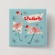 Flamingo Santas Blue Name Button Quadrat
