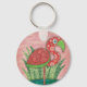 Niedlicher Flamingo, der die frische Brise auf einer exotischen Karibikinsel mitnimmt. Digi~collage von Sandra Vargas
