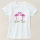 Ursprüngliche grafische Grafik der rosa Flamingoyardstangen mit den bunten und wunderlichen Blumen. Hübscher Sommerzeit-T - Shirt.