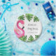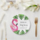 Flamingo-Vogel, tropische Blätter, naturfarbene Papiertafel. Elegante, einfache Kalligraphie, Foto Baby Duschpapierteller. Personalisieren Sie es mit Ihren Daten.