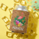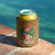 Exotischer Rosa Flamingo, tropische Blume und Blätter auf geflochtenen Korbmustern mit dem Wort PARADISE, dieses Design macht stilvolle sommerliche Dosenkühler. PASSENDE Artikel in unserem Geschäft.
