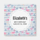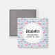 Der Datums-Magnet mit einem Muster mit lustiger Sommeratmosphäre. Rosa Flamingos und Ananas Set auf einem hellblau gestreiften Muster mit Blätter und Herzen herum.
