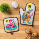 Flamingo und Turtle Fun Ofenhandschuh & Topflappen-Set