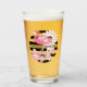 Die Produktgestaltung umfasst einen Flamingo mit kaleidoskopischen Paisley-Mustern in Rosa über schwarz-weißem Streifen Hintergrund. Dieses tropische Vogeldesign mit personalisiertem Text macht ein modernes und einzigartiges Glas.