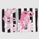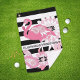 Die Produktgestaltung umfasst einen Flamingo mit kaleidoskopischen Paisley-Mustern in Rosa über schwarz-weißem Streifen Hintergrund. Dieses tropische Vogeldesign mit personalisiertem Text macht ein modernes und einzigartiges Golfhandtuch.