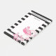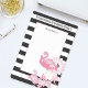 Die Produktgestaltung umfasst einen Flamingo mit kaleidoskopischen Paisley-Mustern in Rosa über schwarz-weißem Streifen Hintergrund. Dieses tropische Vogeldesign mit personalisiertem Text macht moderne und einzigartige Post-it-Notizen.
