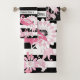 Flamingo Vibes only Black & White Strip Flamingo Badhandtuch Set