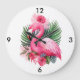 Dieselbe großartige Uhr mit Zahlen, die mit einem tropischen Flamingo-Vogelkunst-Druck versehen sind. Kaufen Sie, wie es ist oder anpassen. Lizenziertes Bild