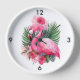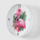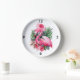 Dieselbe großartige Uhr mit Zahlen, die mit einem tropischen Flamingo-Vogelkunst-Druck versehen sind. Kaufen Sie, wie es ist oder anpassen. Lizenziertes Bild