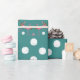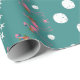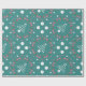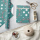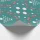 Weihnachtsverpackungspapier an der Küste auf einer Rolle. Die hochwertigen, schweren Geschenkpackungen haben ein einzigartiges Design mit Flamingos, Sand Dollars und Seestern auf blaugrauem Hintergrund. Weihnachtsbaumbilder sind aus weißen Seestern mit einem Sand-Dollar-Basis gemacht. Zirkuläre Muster in rosa-weißem Stranddesign.