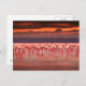 Eine Herde von bunten Flamingos, die den schönen Sonnenuntergang einnehmen