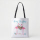 Warmes Klima Weihnachtsstüte mit Flamingos-Design. Frohe Weihnachten Gruß in blau an der Spitze ist leicht zu ändern. Ein paar festliche Flamingos stehen sich gegenüber und tragen Kränze von tropischen Blume und heiligen Blätter. Ein paar kleine Seesterne stehen unter ihren Füßen. Die Rückseite ist von winzigen blauen Sternen bedeckt. Diese robuste Tasche kann für Geschenke verwendet werden oder während der Ferienzeit einkaufen gehen. Auch macht ein nettes hostess Geschenk.