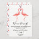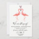 Wir sind dabei! Ankündigung mit Empfang Einladung mit ein paar rosa Flamingos. Finden Sie passende Schreibwaren in unserem Shop.