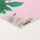 Schöne Illustration eines Flamingos in Flug mit exotischen Blätter und Blume mit einem rosa glitzernden Hintergrund. Märchendesign