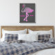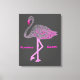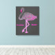 Mosaik, grafisch gezeichnet, aus einem tropischen Flamingo-Vogel, in exotischen, Abstrakten Farbmustern, hell-rosa, violett, fuschia, dunkelbraun und schwarz, vor dunklem Hintergrund.