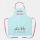 Flamingos Bib Schürze mit rosa Text auf blass blau. Verwendung für eine Business-Küche oder Küsten-Zuhause. Vier Flamingos auf der Spitze der Schürze und vier größere Flamingos auf der Wasserlinie. Sie tragen Blumenkränze und stehen unter kleinen blauen Sternen. Rosa Krawatte passen zu den Flamingos, oder ändern Sie die Farbe, wie Sie möchten.