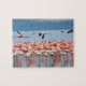 Spielpuzzle gezeigt mit einem Foto von schönen Flamingo-Vögeln. Passen Sie dieses Objekt an oder kaufen Sie, wie es ist. Bild