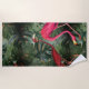 Zwei rosa Flamingos auf einem Hintergrund von Monstera-Blätter