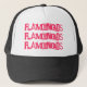 Schwarzer Fernlastfahrer-Hut mit dem Flamingo geschrieben in helles Rosa. Sehr Vorwärts Fasion und erhalten die Aufmerksamkeit, die Sie wollen!