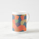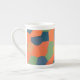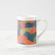 Eine auffällige Kaffee-Tasse der Bone China mit abstraktem Farbmuster - Flaming Orange, Midnight Blue und Deep Green, von Judy Adamson.