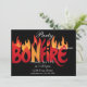 Eine digitale Abbildung einer Bonfire Flammen Graduation Party Einladung Eine Grafik-Design mit dem Wort entfeuern mit Flammen in den Buchstaben integriert.