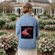 Ein Foto einer Gruppe von rosa Flamingos, die im Schatten unter einem Baum ruhen. Auf Flamingo sieht mich, wie ich die Vögel fotografiere. Image Copyright ©Kimberly J Tilley. zazzle.com/store/developingnature