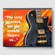 Eine schöne elektrische Gitarre ist auf einem feurigen Hintergrund, der perfekt für Gitarrist ist. Ein Zitat von Irvin Berling ist auf der Rückseite enthalten: "Das Lied ist beendet, aber die Melodie hält an..."
