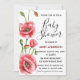 Flandern Mohn Baby Dusche Einladung. Gestaltungsmerkmale von Aquarell Flandern Mohnfarben Blume und rotem Aquarellhintergrund. Fügen Sie auf der Vorderseite Party-Details hinzu. Klicken Sie zum Ändern der Vorlage auf Weitere Anpassungen.