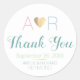 Falsch gold heart with the bride and groom initials on white Thank You sticker... for your wedding favor ideas
