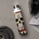 Dieses Kunstwerk ist ein lebendiges Fest des Lebens und der Tradition und besticht durch einen blendend zuckerhaltigen Schädel, der in türkisfarbenen, magentafarbenen und goldenen Farbtönen verziert ist. Umgeben ist es ein leuchtender Berg von orangefarbenen und sonnigen gelben Blüten, deren Blüten Wärme und Vitalität ausstrahlen. Zusammen schaffen die Elemente eine harmonische Mischung aus lebhaften Farben und symbolischer Schönheit, die den Geist von Día de los Muertos mit Ehrfurcht und Freude weckt.