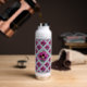 Überall, wo man hingeht, findet man eine isolierte Wasserflasche, die eine inspirierende Botschaft enthält, und ein wunderschönes Design mit Fotos von hübschen lila Mohn, umgeben von Rändern, die aus den faszinierenden Mustern der Baumrinde stammen.