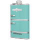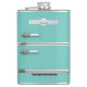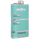 Flasche mit Retro GE Kühlschrank Grafik. Türkis Flachmann